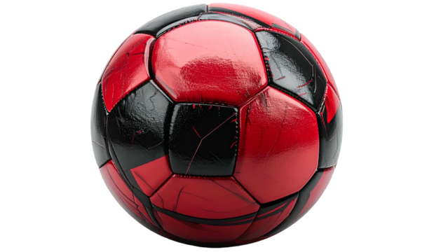 Vintage weathered red and beige soccer ball on transparent background representing classic sport and retro play