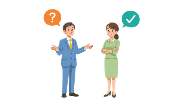 Isolated Two people in conversation with question and answer speech bubbles, business concept