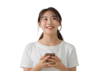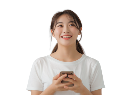Smiling East Asian Young Adult Using Phone