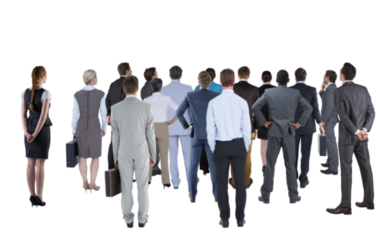 Digital png photo of group of business people looking up on transparent background