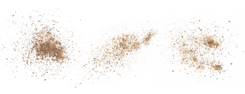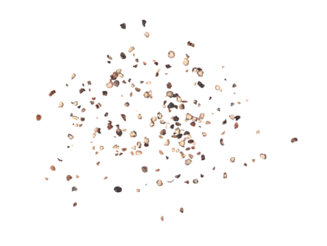 Pepper, Coarsely crushed ground black pepper on transparent png. Top view