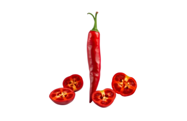 Red chili pepper with slices isolated on black background