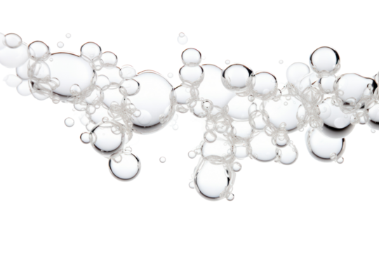 Cluster of hyaluronic acid bubbles varying in size with subtle reflections on their surfaces isolated on white background