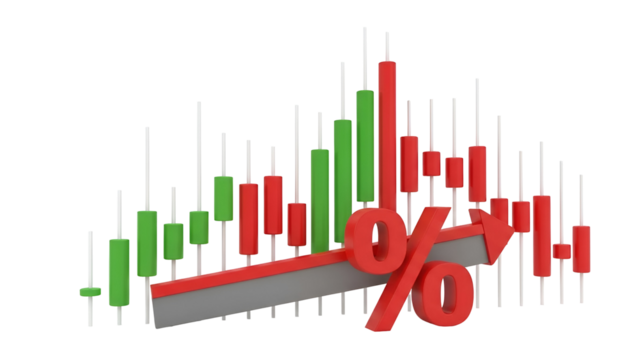 Visualize your financial growth with this professional illustration featuring golden coins, an upward arrow, and a percentage symbol, ideal for presentations and marketing materials about investments
