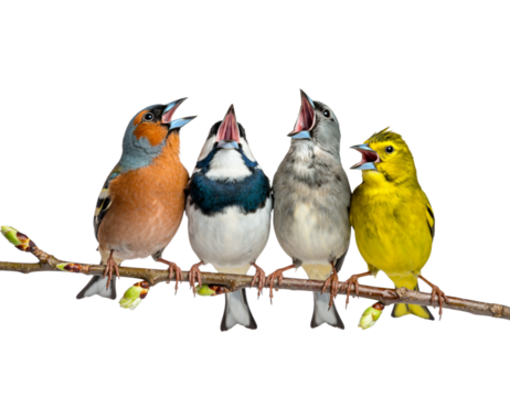 Charming bird perching on abstract flower with transparent background
