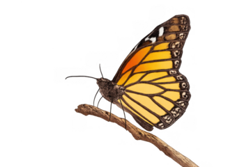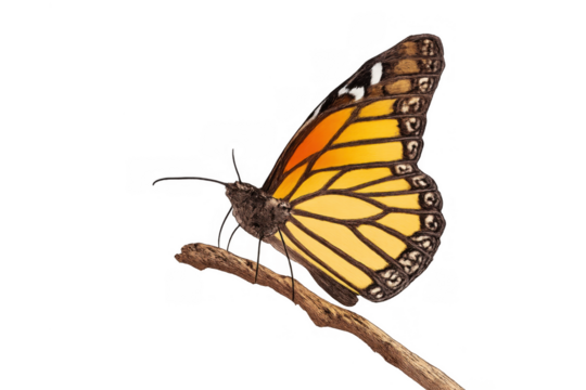 Transparent vibrant orange butterfly in flight