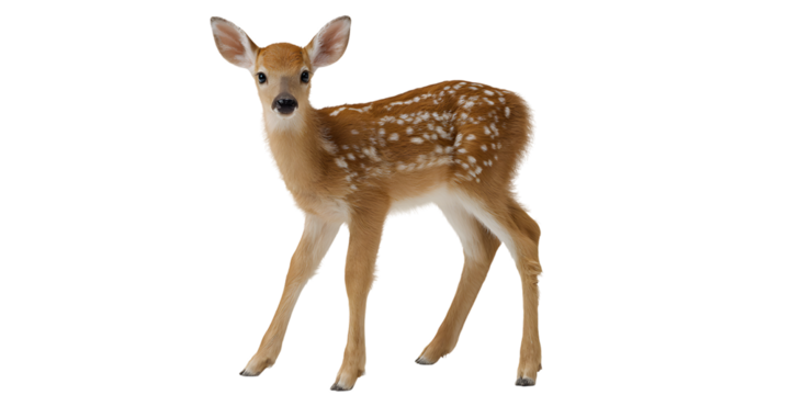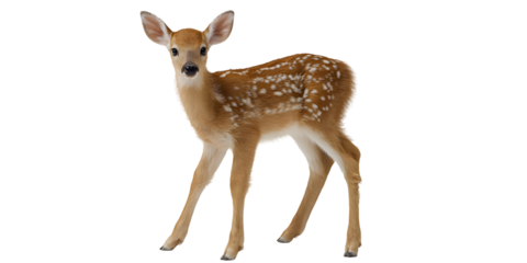 Young fawn standing alone isolated on white background