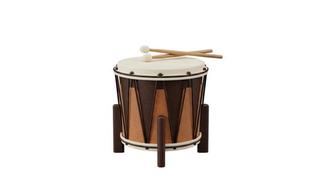 Djembe drum on transparent background featuring african percussion instrument with wood body and white drumhead for rhythm and music