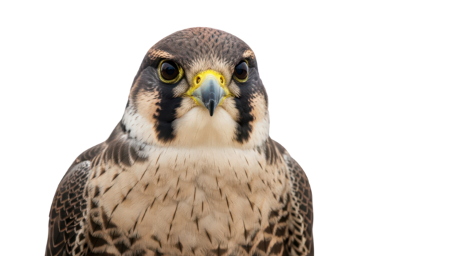 Close-up portrait of a majestic Peregrine Falcon looking directly forward isolated PNG with Transparent Background