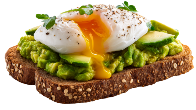 Avocado toast with perfectly poached egg and greens