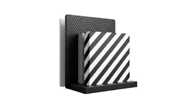 Black and white striped object with perforated panel