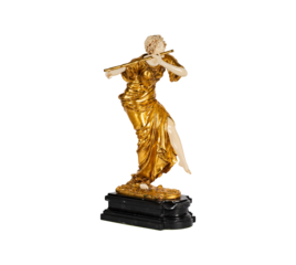 Gilded Dancer Statue on Dark Background. Elegant Artistic Achievement & Performance Art. PNG