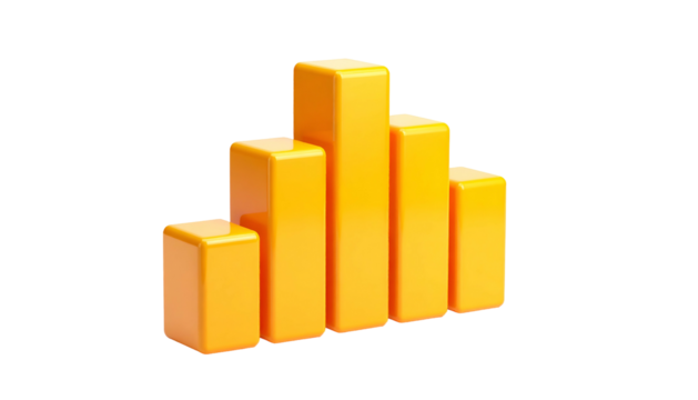 A 3D rendered orange bar graph rises from left to right, representing data trends