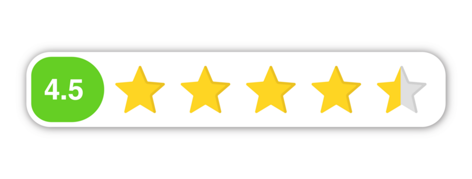 .5 star rating PNG with transparent background, numeric labeled review feedback icon for near perfect score and high satisfaction
