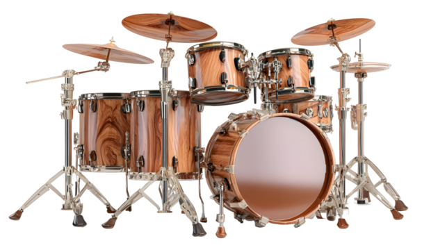 Realistic drum kit with polished wood texture and metallic hardware for music enthusiasts