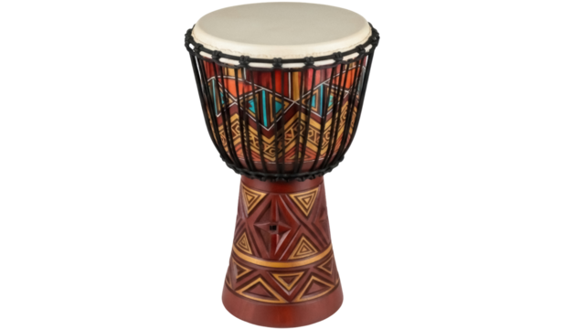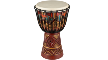 Isolated Djembe drum with colorful tribal patterns, African music, native percussions