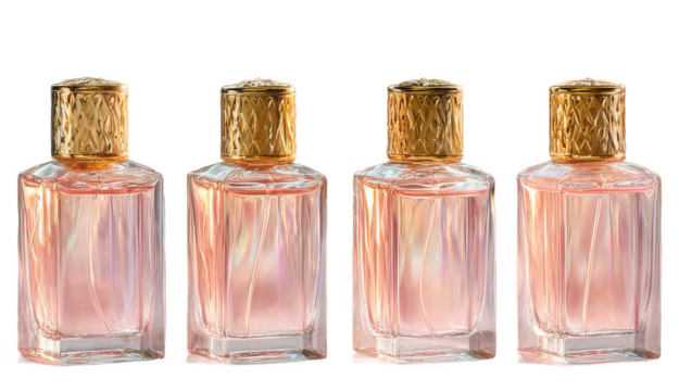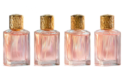 Elegant perfume bottles emitting floral fragrance isolated on transparent background