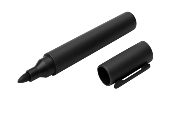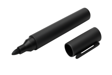 A black marker with its cap off to the side isolated on transparent background, ideal for writing, drawing, and creating bold, permanent marks on surfaces