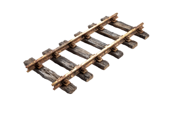 Segment of Vintage Railway Track on Transparent Background