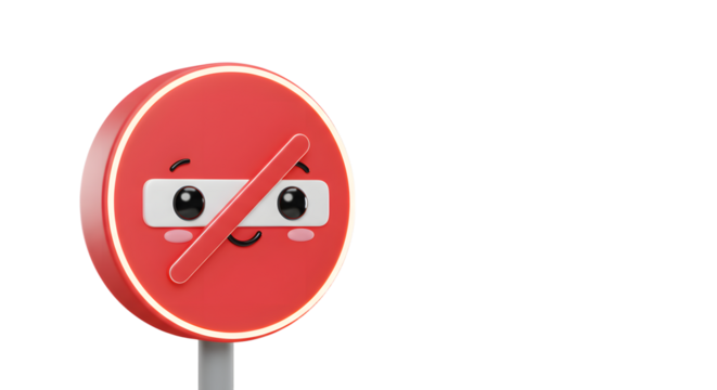 Cute Cartoon No Entry Sign with Eyes and Smile Illustration