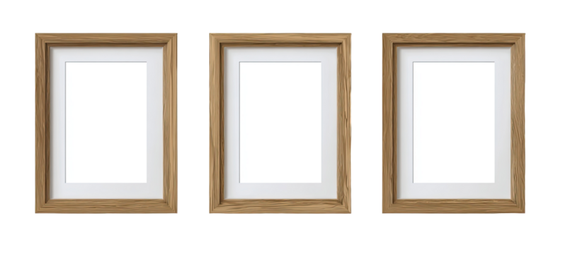 Three light brown wooden picture frames