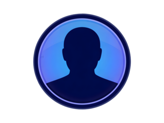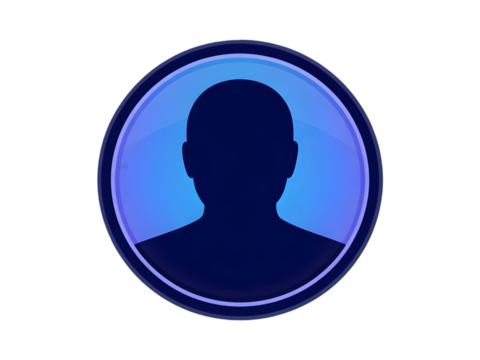 Silhouette Avatar Profile Icon with Blue Glow Circle, Representing User or Person, Digital Symbol Isolated on Transparent Background