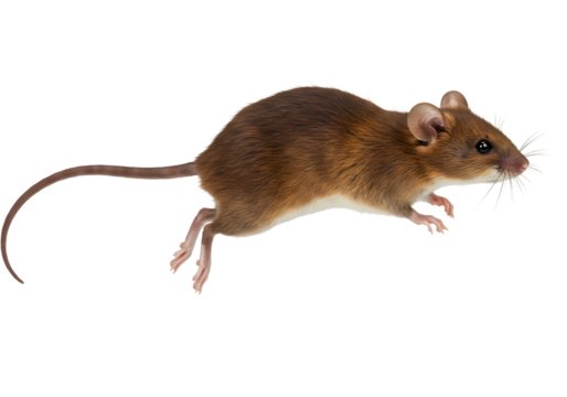 Classic wooden mouse trap with metal spring and bait on plain white background in sharp focus for pest control advertisement