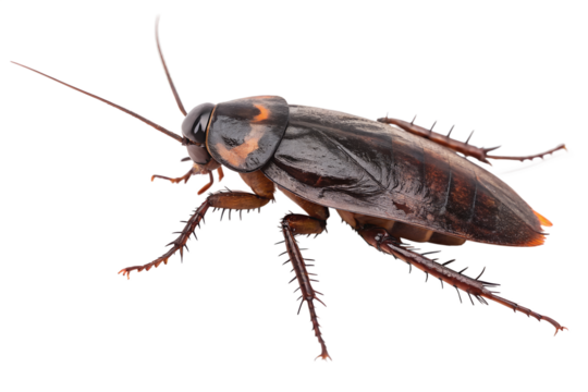 Cockroach on transparent background showing detailed features