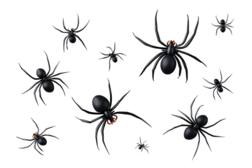 Creepy black spiders with transparent background