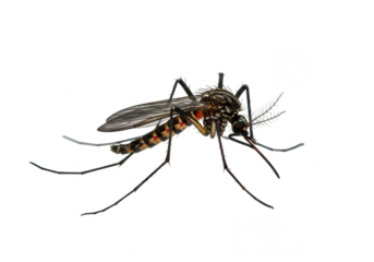 Detailed macro photograph of a mosquito with intricate markings isolated on transparent background