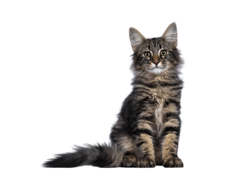 Beautiful funny Kitten. Cat on a white background. Cat posing at camera. Close up portrait of a cute Kitten. Web banner with copy space. Pet. Empty space for text.