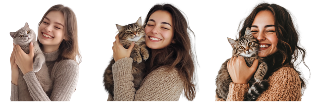 Portrait of Happy dog and cat that looking at the camera together isolated on transparent background, friendship between dog and cat, amazing friendliness of the pets.