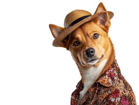 Cute cartoon dog sitting on a colorful background with soft shapes and lines in a playful style