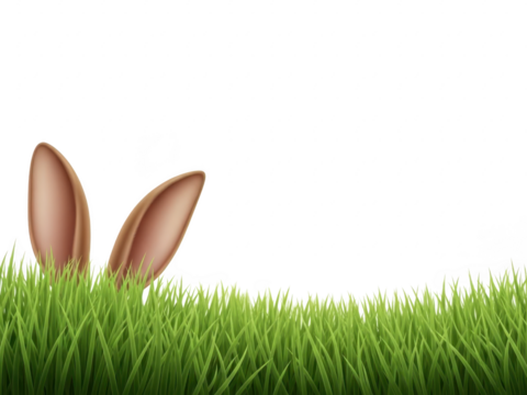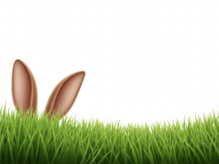 Bunny ears peeking out from behind green grass on a transparent background with easter theme