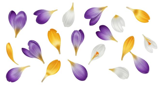 Delicate floral pattern with purple and pink blooms isolated on transparent background