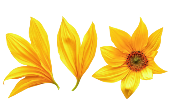 sunflower petals and bloom - isolated on black