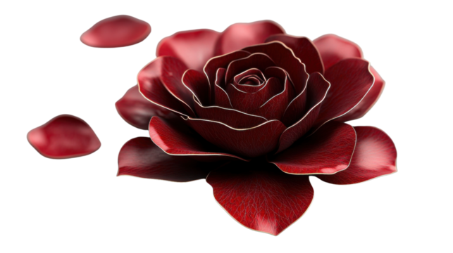 Black rose petals isolated on transparent background with dark floral texture for design and decoration projects.