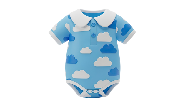 Baby Boy's Blue Cloud Print Bodysuit with Peter Pan Collar