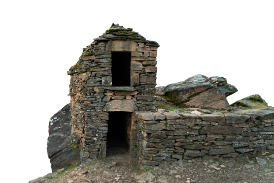 Ruine en pierre sèche png. Petite maison en pierre détourée ou png.