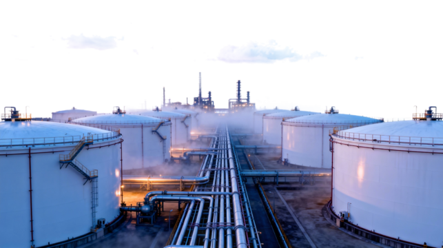 Oil Refinery with Storage Tanks and Pipes