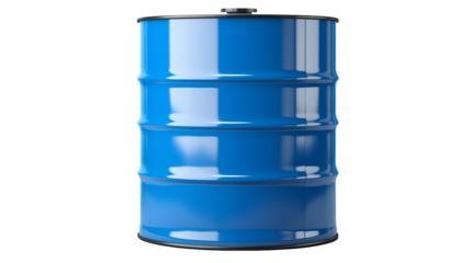 A shiny blue metal barrel stands tallIsolated on transparent Background , industrial supply.