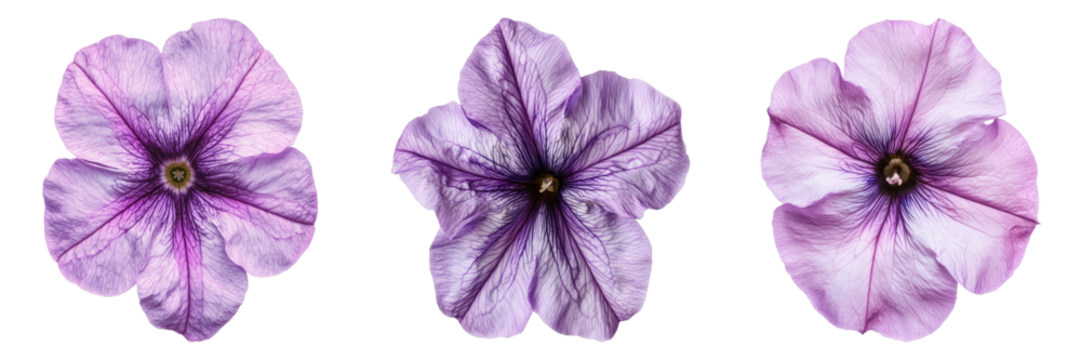 Collection of petunia flowers isolated on transparent background for florist and garden design and background
