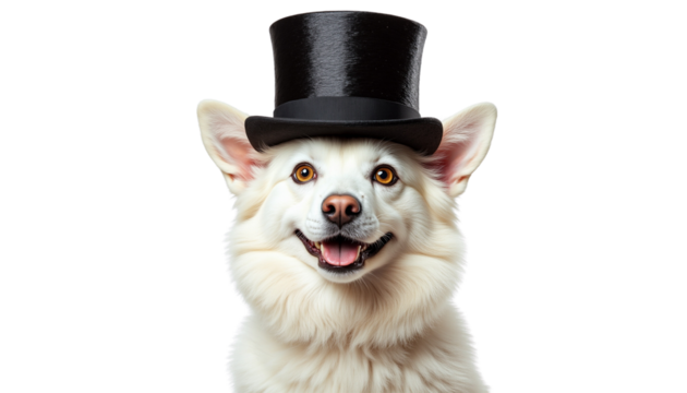 Cheerful Dog Wearing a Top Hat with a Playful Expression.
