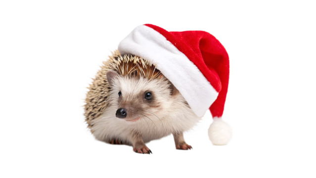 Hedgehog wearing a festive Santa hat celebrates Christmas in a joyful holiday scene