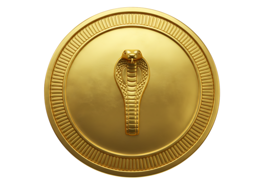 Golden coin depicting a cobra on a black background featuring intricate details