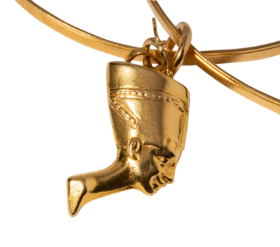 Golden Nefertiti Bust Pendant on Dark Background PNG