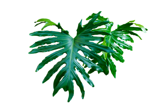 Shiny green of split leaf philodendron philodendron selloum or monstera the popular tropical foliage rainforest isolated on transparent background. PNG transparency