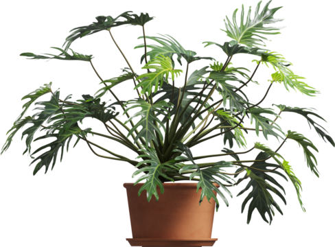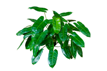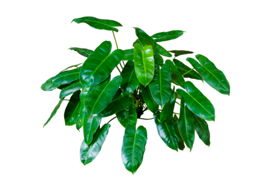 Lush green philodendron plant displaying heart shaped leaves on a transparent background