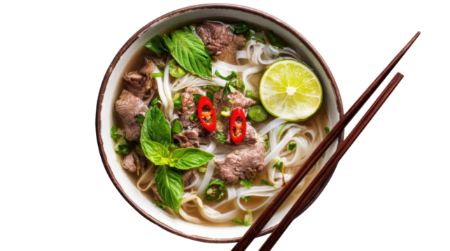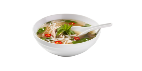 Authentic pho isolated on a white transparent background, showcasing the vibrant broth, herbs, and noodles, perfect for food photography, recipe blogs, and marketing Vietnamese cuisine online