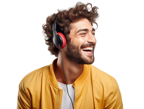 Music lover derives pleasure from beats and rhythm through headphones, cut out